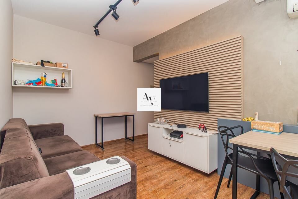 1 Dormitório, sendo 1 suíte2 Banheiros1 VagaCom box na garagemGaragem Coberta1 Sala de TV1 Cozinha1 Sala de jantar1 Sala de estar1 Área de serviço