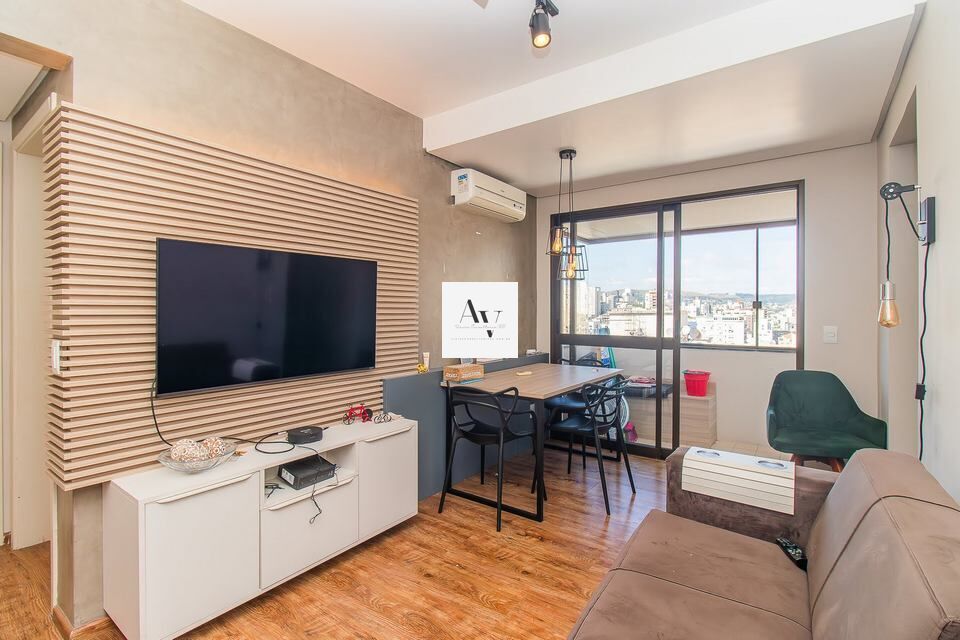 Ótimo apartamento, fica mobiliado , 1 dormitório amplo, living para 2 ambientes, sacada com churrasqueira, cozinha, área de serviço e garagem escriturada. Edifício com elevador, gás central e portaria. Lucas de Oliveira próximo a Passo da Pátria -Agende sua visita.